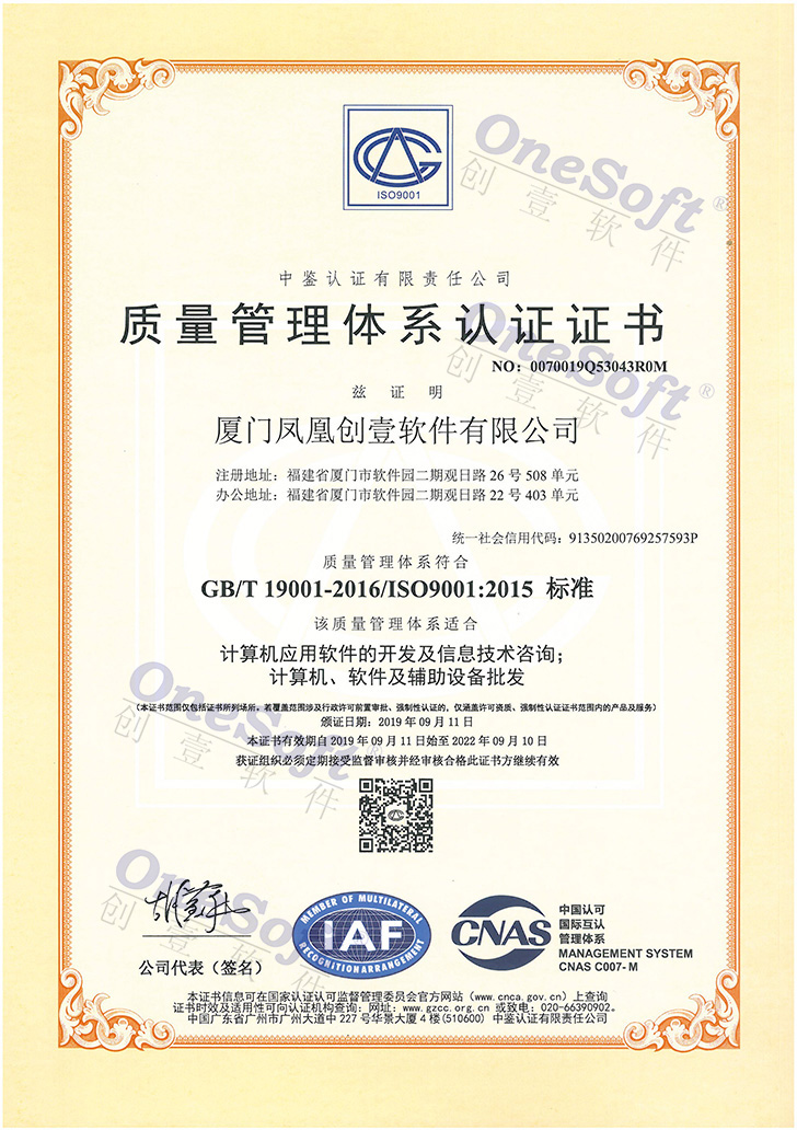 質量管理體系認證證書