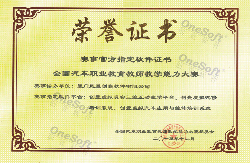 2013年汽車大賽官方指定軟件證書