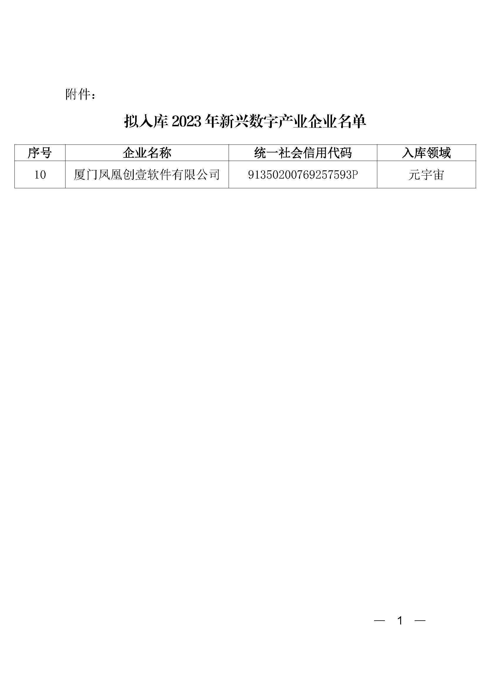 11月1日,廈門市工業(yè)和信息化局、廈門市大數(shù)據(jù)管理局發(fā)布關于擬入庫2023年廈門市新興數(shù)字產業(yè)企業(yè)名單的公示通知,鳳凰創(chuàng)壹作為元宇宙領域企業(yè)進入擬入庫2023年廈門市新興數(shù)字產業(yè)企業(yè)名單。