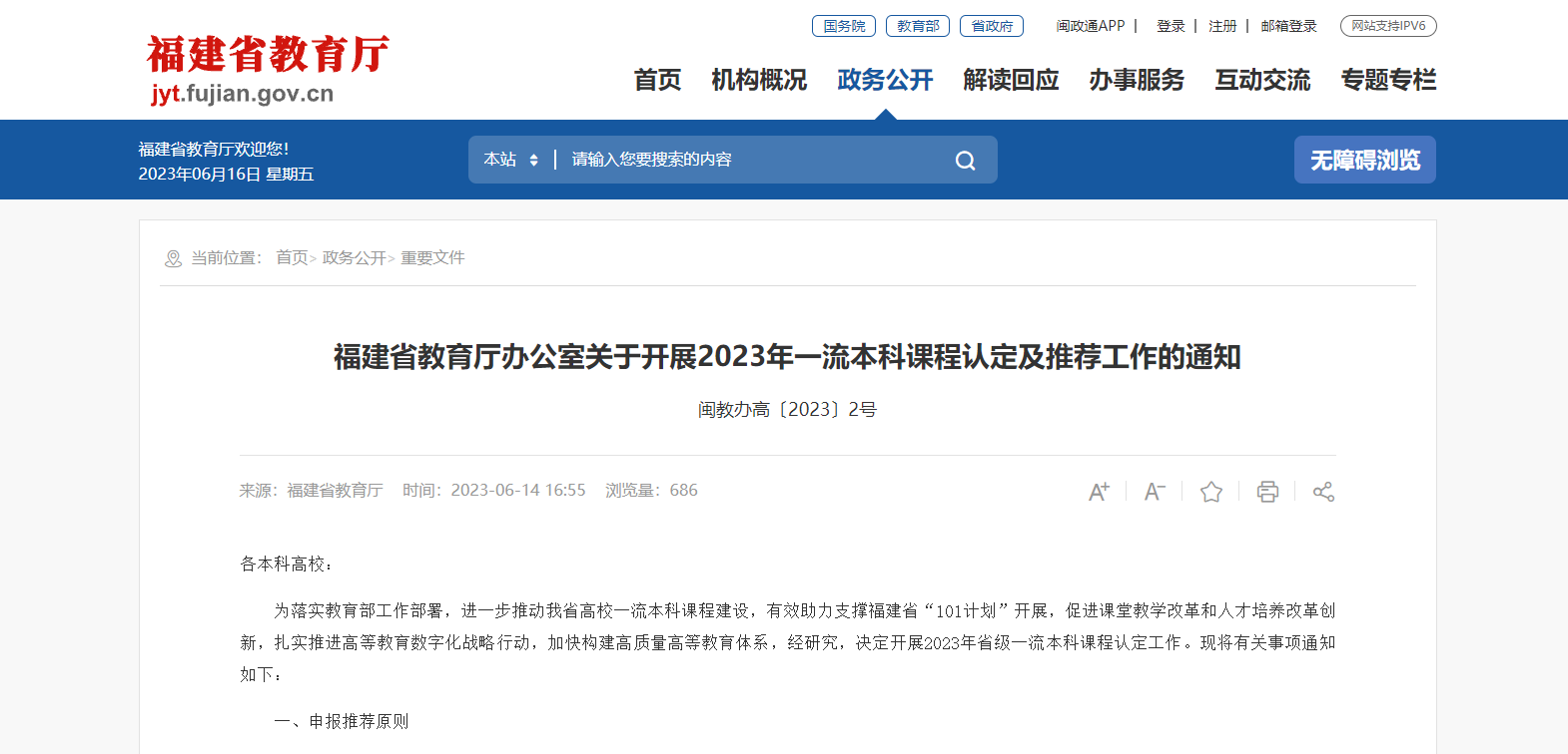 福建省教育廳辦公室發(fā)布關(guān)于開(kāi)展2023年一流本科課程認(rèn)定及推薦工作的通知