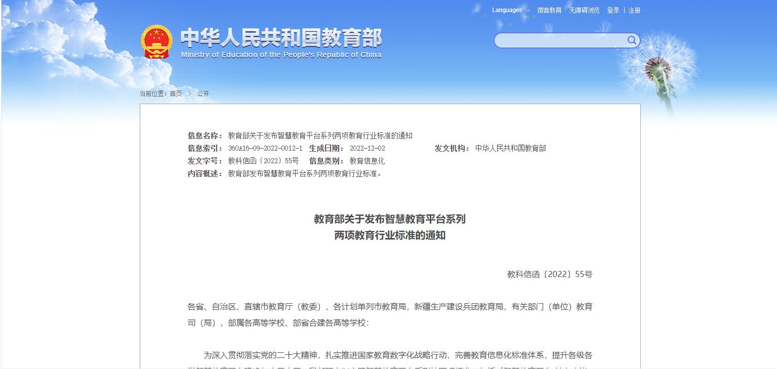 教育部關(guān)于發(fā)布智慧教育平臺系列兩項教育行業(yè)標(biāo)準(zhǔn)的通知