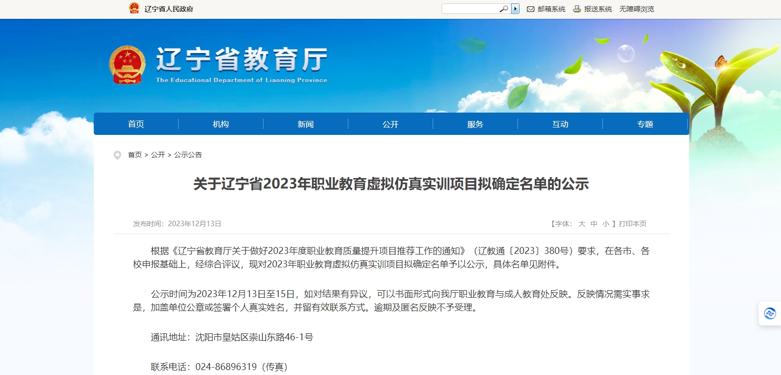 遼寧省公示2023年職業(yè)教育虛擬仿真實(shí)訓(xùn)項(xiàng)目擬確定名單