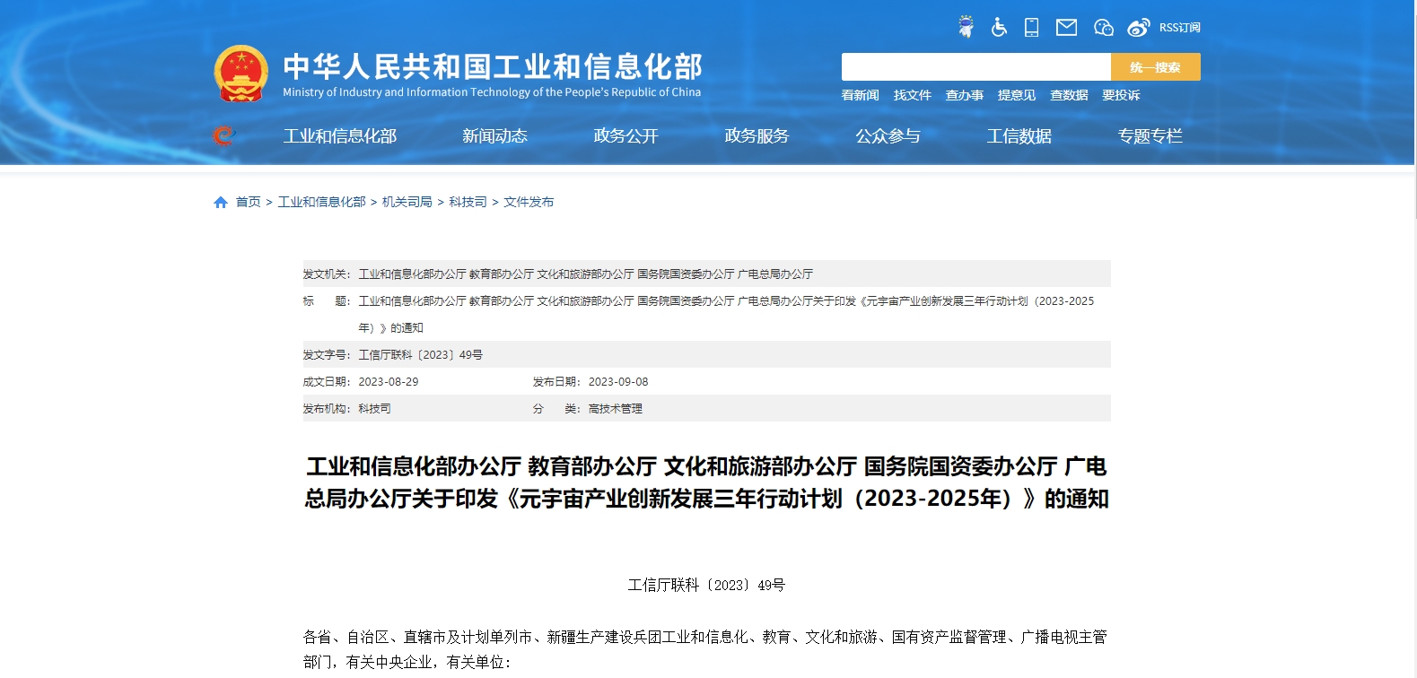 工信部等五部門印發(fā)元宇宙產(chǎn)業(yè)創(chuàng)新發(fā)展三年行動(dòng)計(jì)劃
