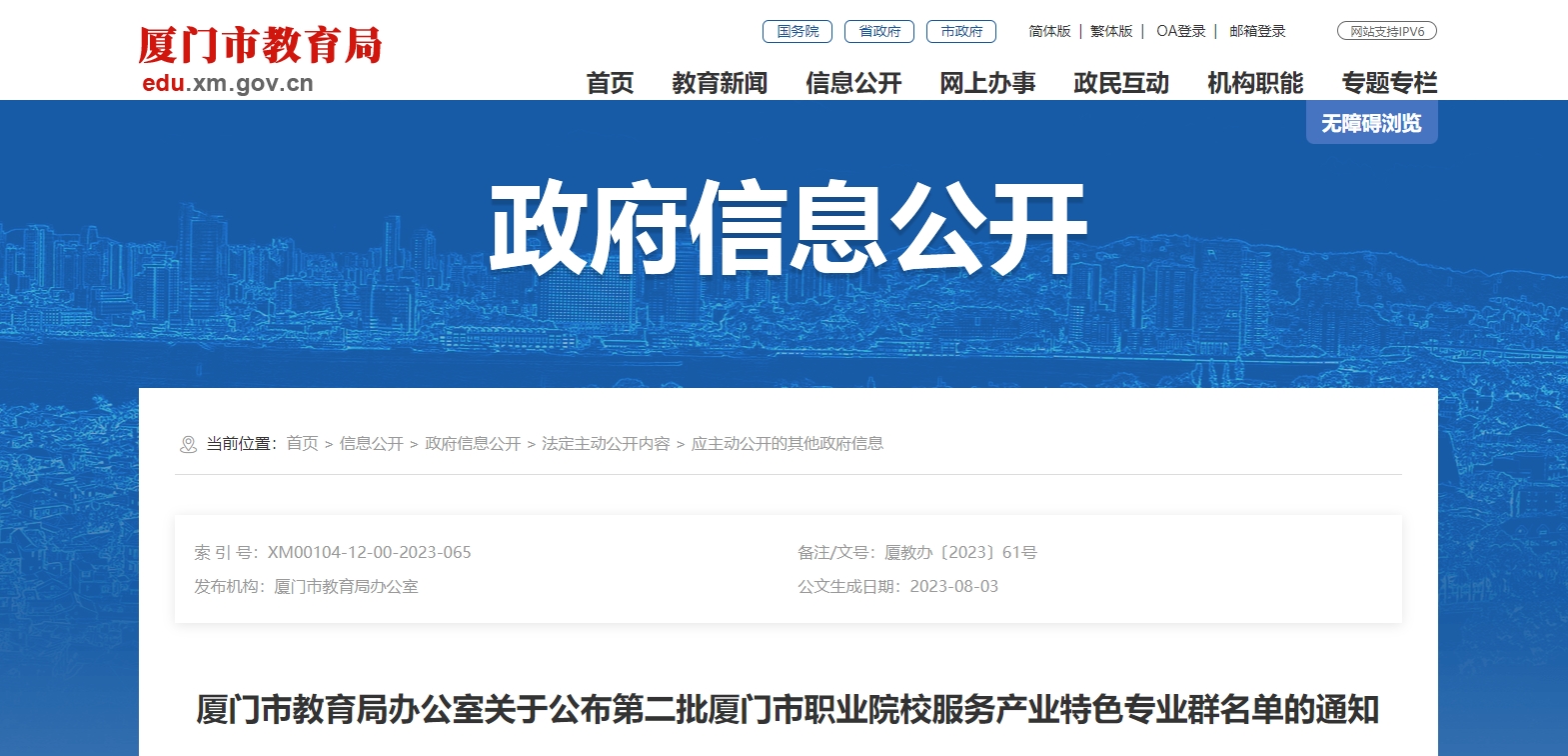 廈門市教育局辦公室關(guān)于公布廈門市應(yīng)用型本科高校高水平專業(yè)立項(xiàng)建設(shè)名單的通知
