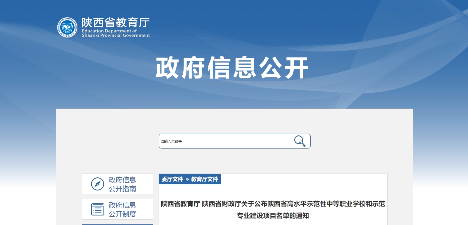 陜西省教育廳、陜西省財(cái)政廳公布陜西省高水平示范性中等職業(yè)學(xué)校和示范專業(yè)建設(shè)項(xiàng)目名單
