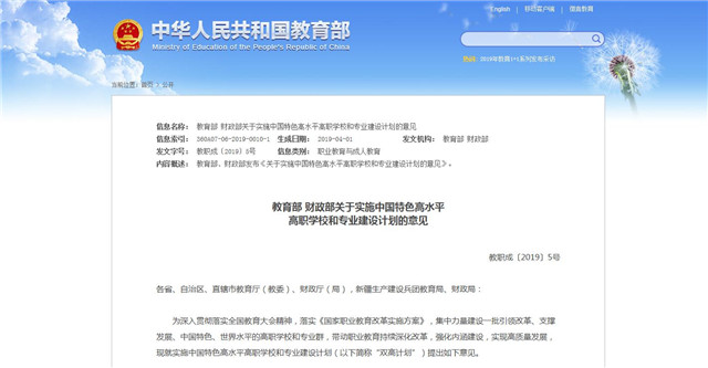 教育部財政部聯(lián)合發(fā)文 高職迎來雙高計劃