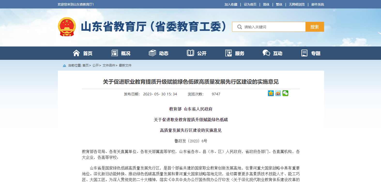 教育部 山東省人民政府雙部門發(fā)布關(guān)于促進職業(yè)教育提質(zhì)升級賦能綠色低碳 高質(zhì)量發(fā)展先行區(qū)建設(shè)的實施意見
