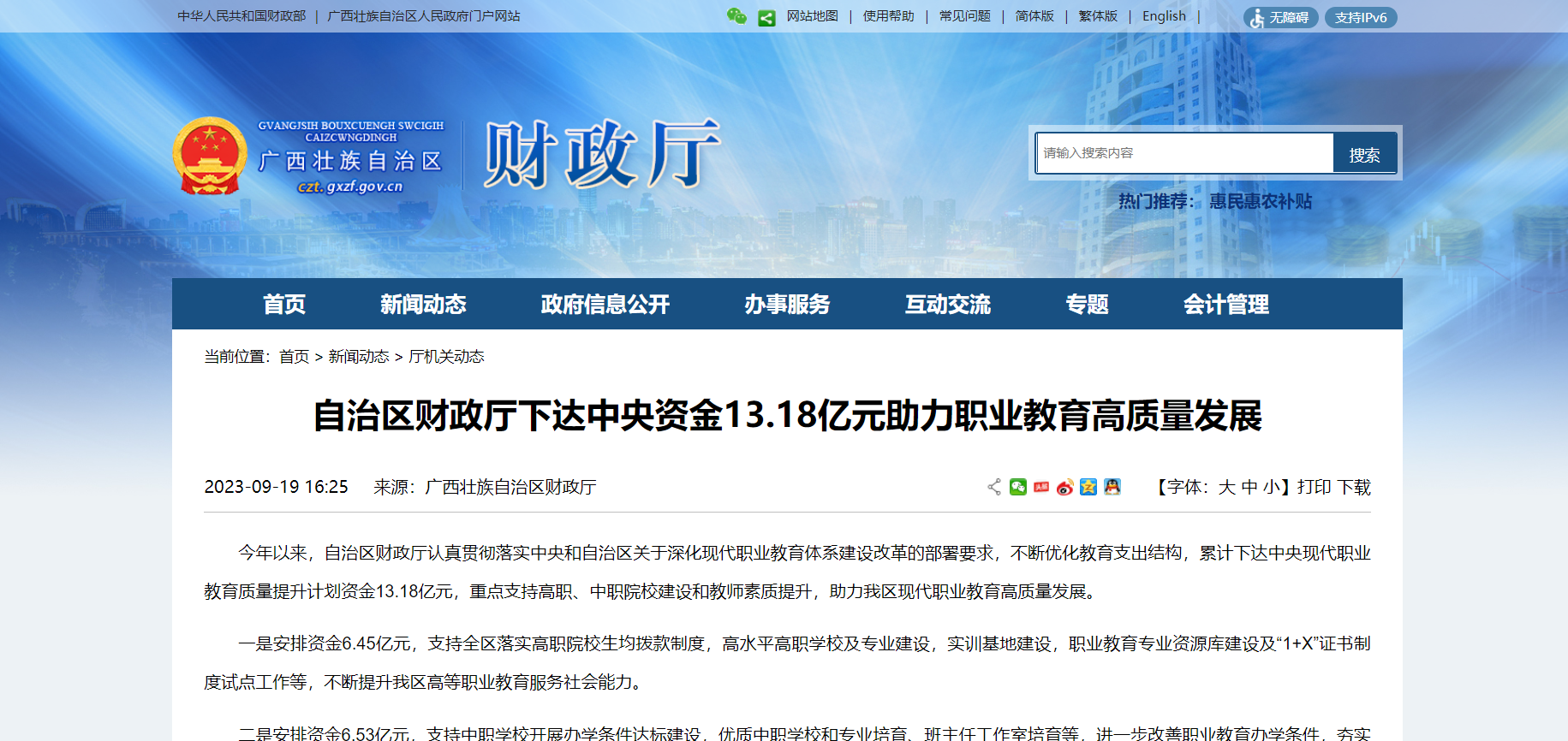 廣西自治區(qū)財政廳下達中央資金13.18億元助力職業(yè)教育高質(zhì)量發(fā)展