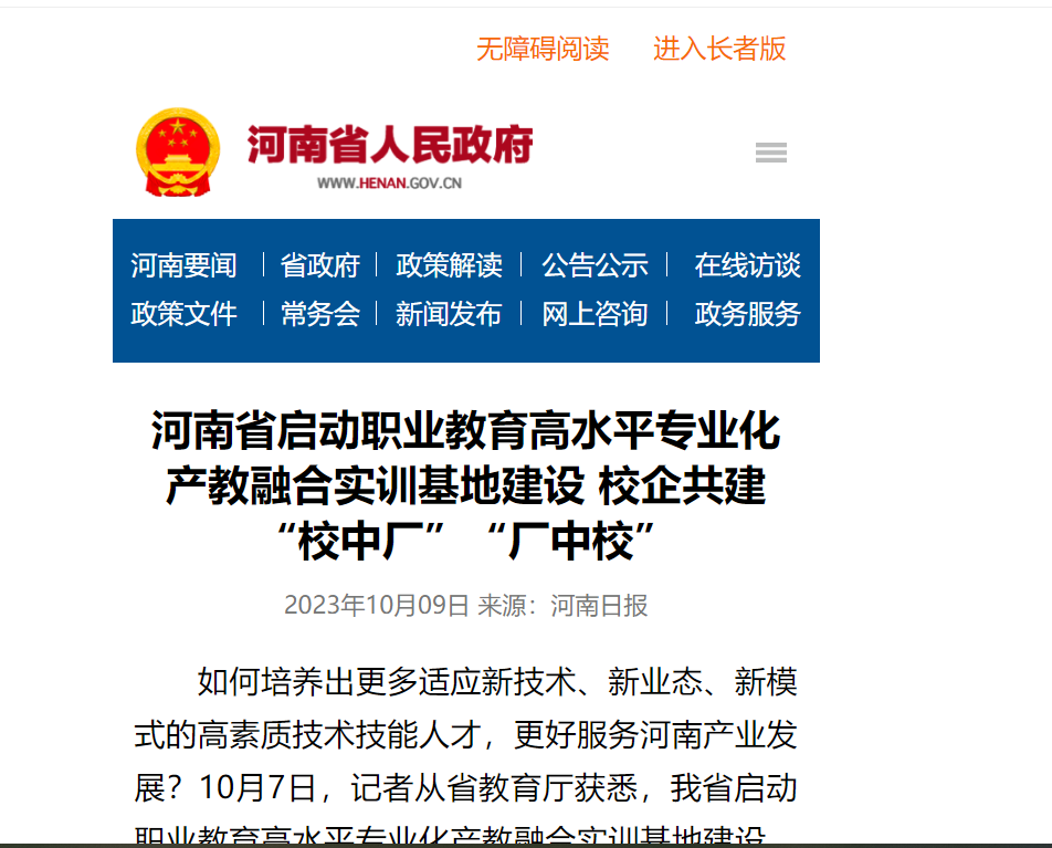 河南擬遴選建設(shè)30個高水平專業(yè)化產(chǎn)教融合實訓(xùn)基地
