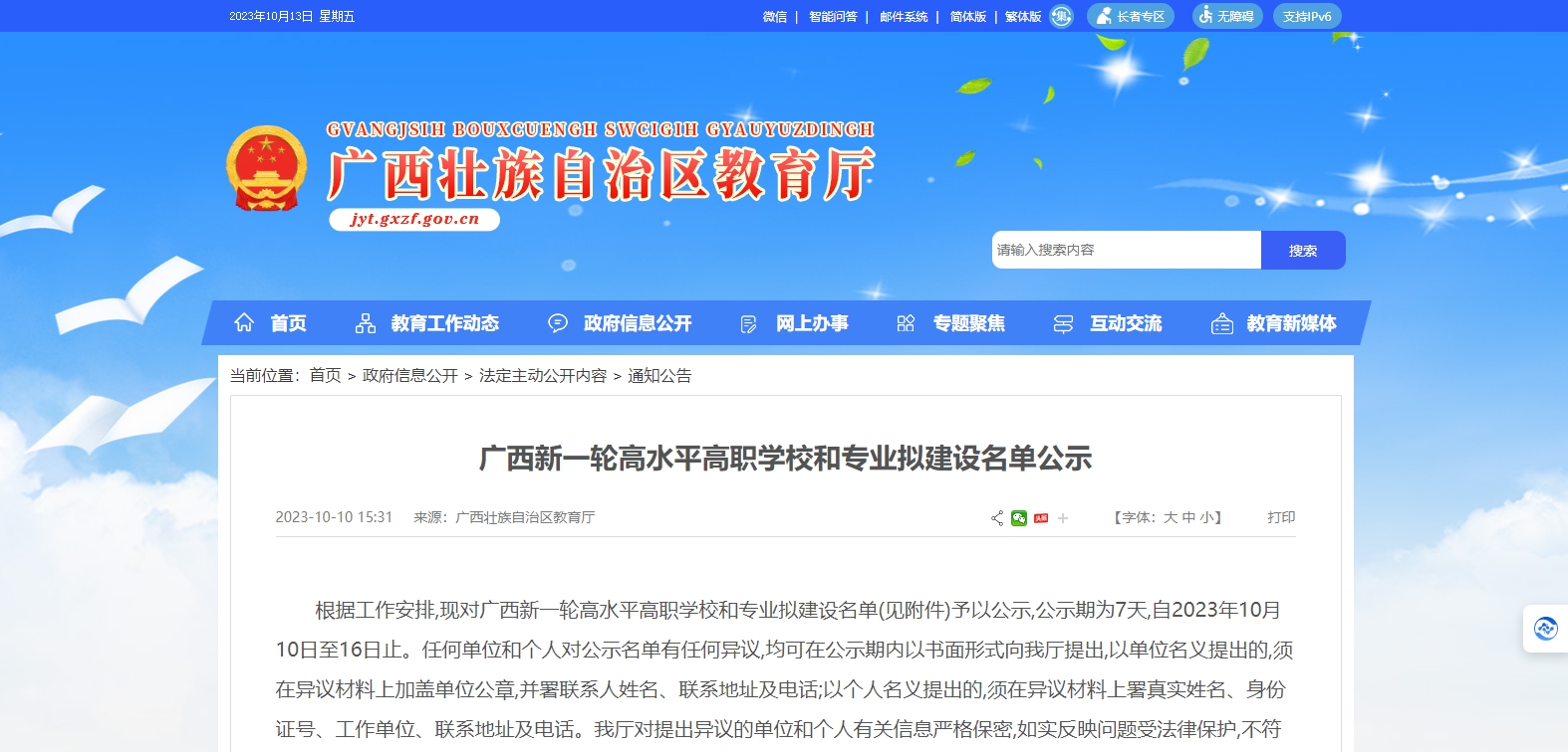 廣西壯族自治區(qū)教育廳近日在其官方發(fā)布《廣西新一輪高水平高職學(xué)校和專業(yè)擬建設(shè)名單公示》的通知,以下是名單