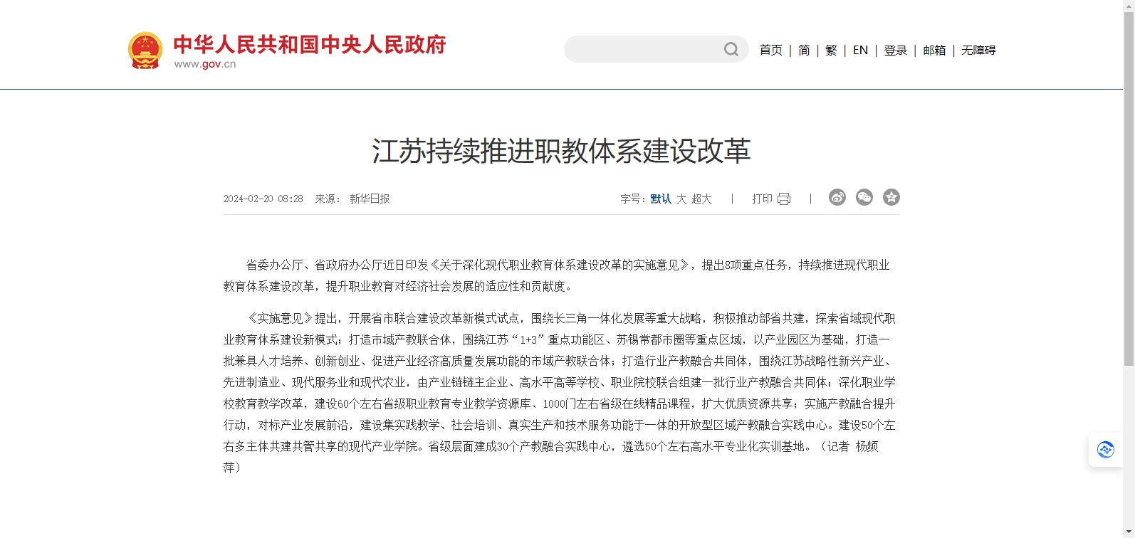 江蘇持續(xù)推進職教體系建設改革