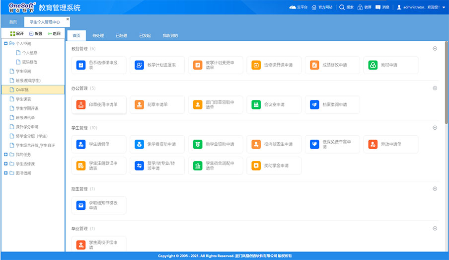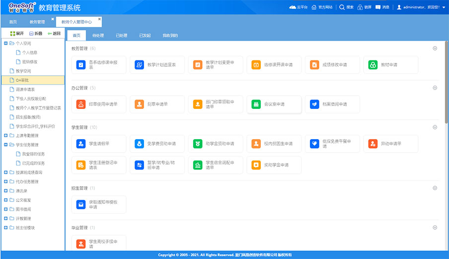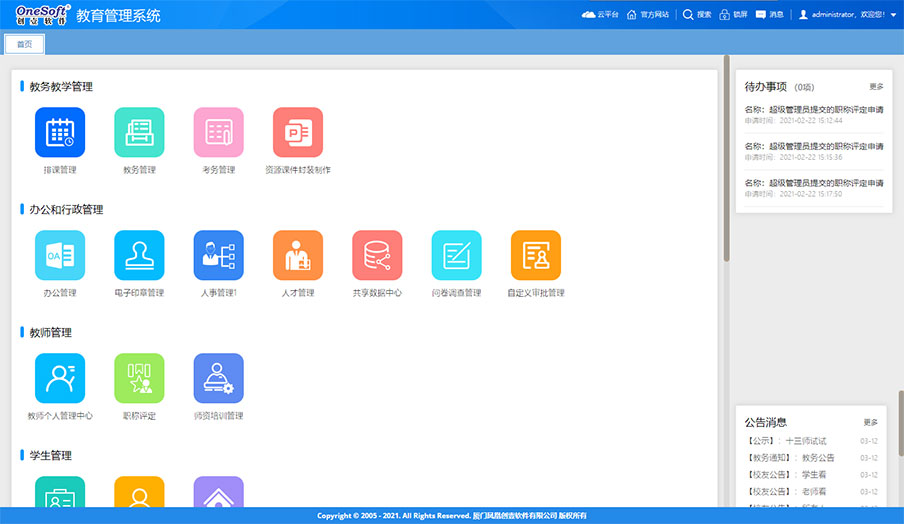 系統(tǒng)由原來的桌面級的管理系統(tǒng)轉(zhuǎn)變?yōu)槊嫦蛴脩籼峁┓?wù)的功能強(qiáng)大的企業(yè)級應(yīng)用平臺。如工作報告、任務(wù)交辦、項目管理、工作任務(wù)管理、管理看板、學(xué)校知識庫、檔案管理等這些工具支撐日常工作,為教職工工作增效,為干部決策和管理賦能,可提大提升全員工作效率和學(xué)校管理水平。